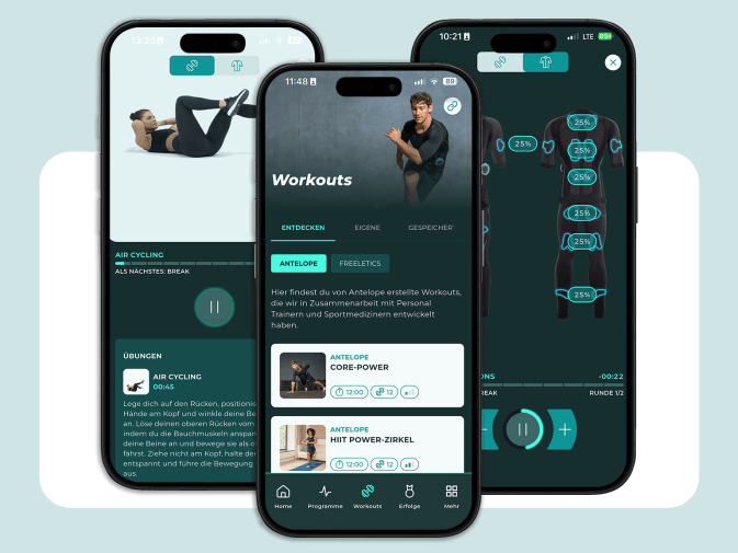 - Entraînement efficace et flexible: Plus de 40 programmes EMS adaptés à tes objectifs