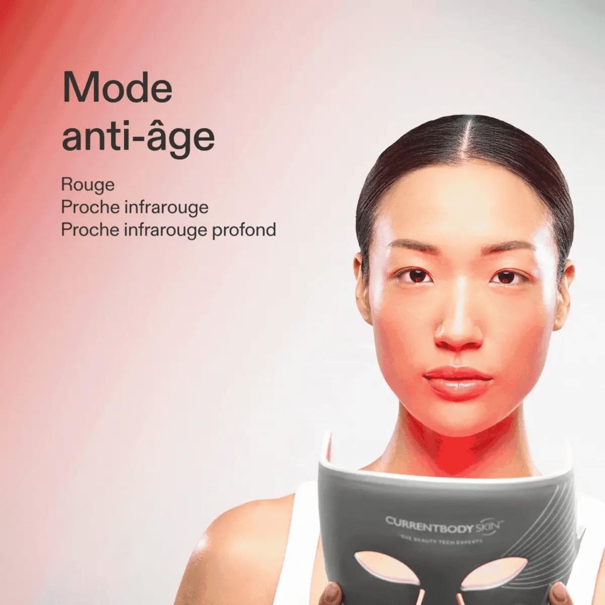 Proche infrarouge (830nm) : Énergise les cellules pour raffermir, resserrer et éclaircir la peau.